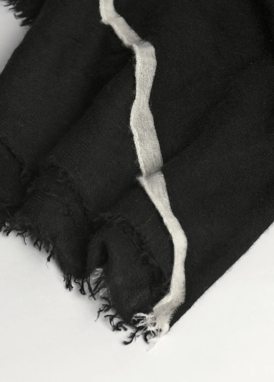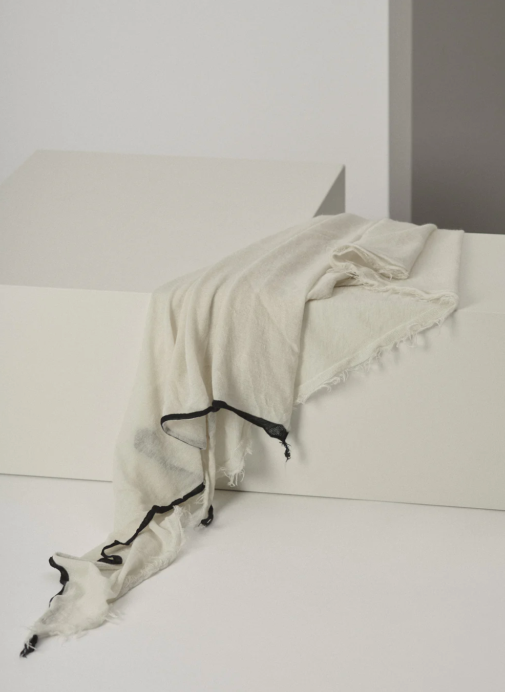 A 100% cashmere stall made in Japan, ultra-light, warm, and soft, featuring a subtle accent color on the edge for versatile styling.