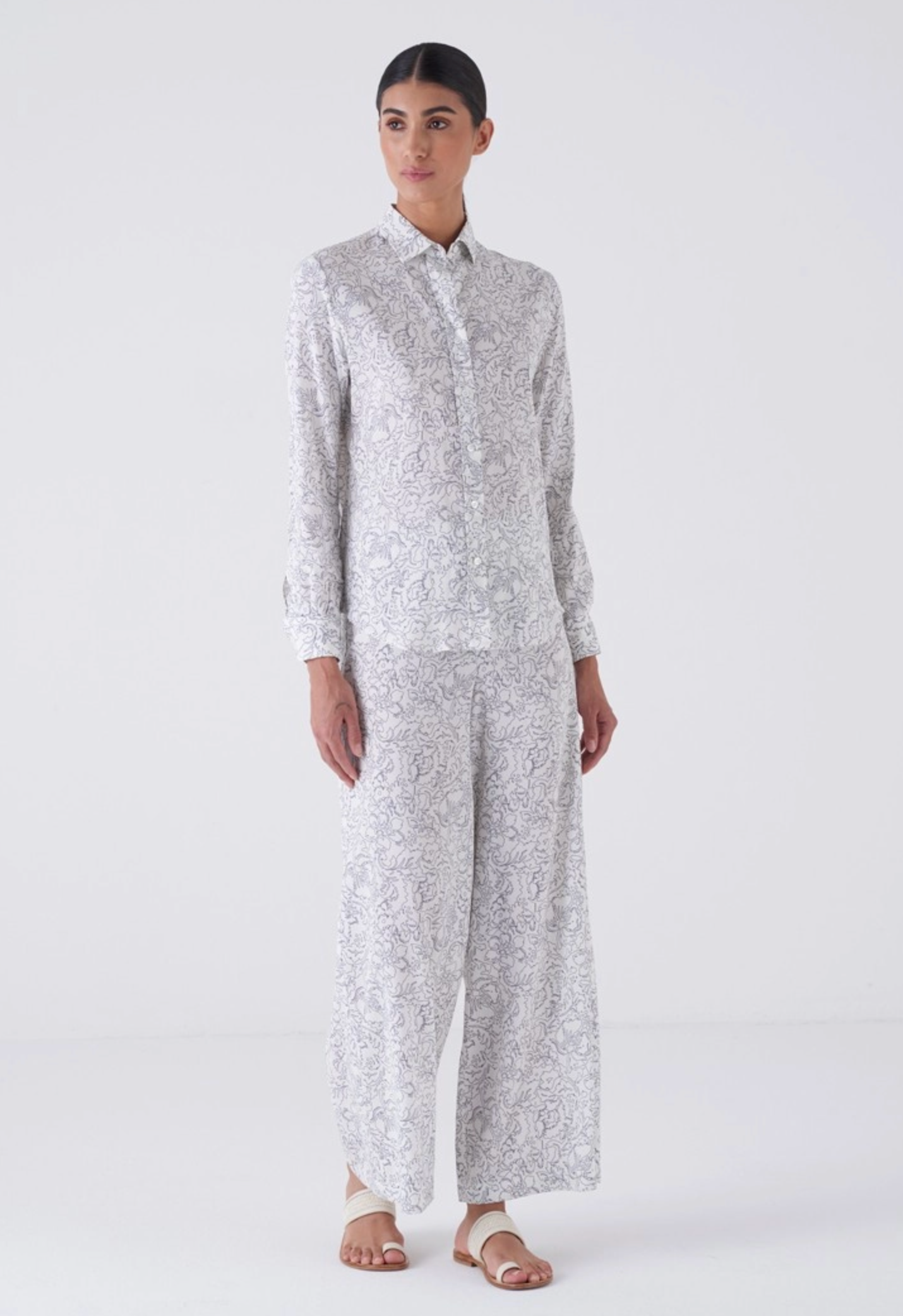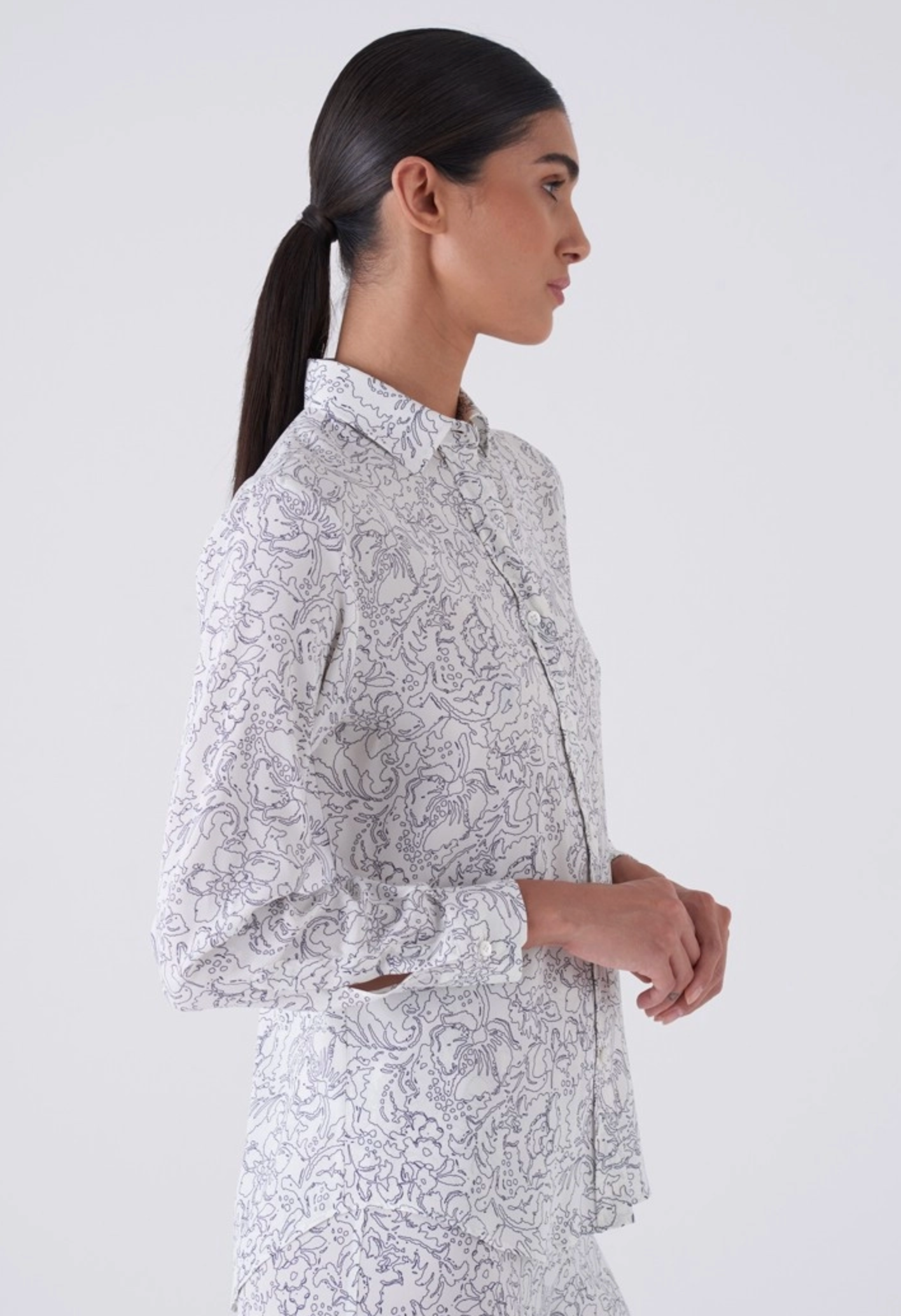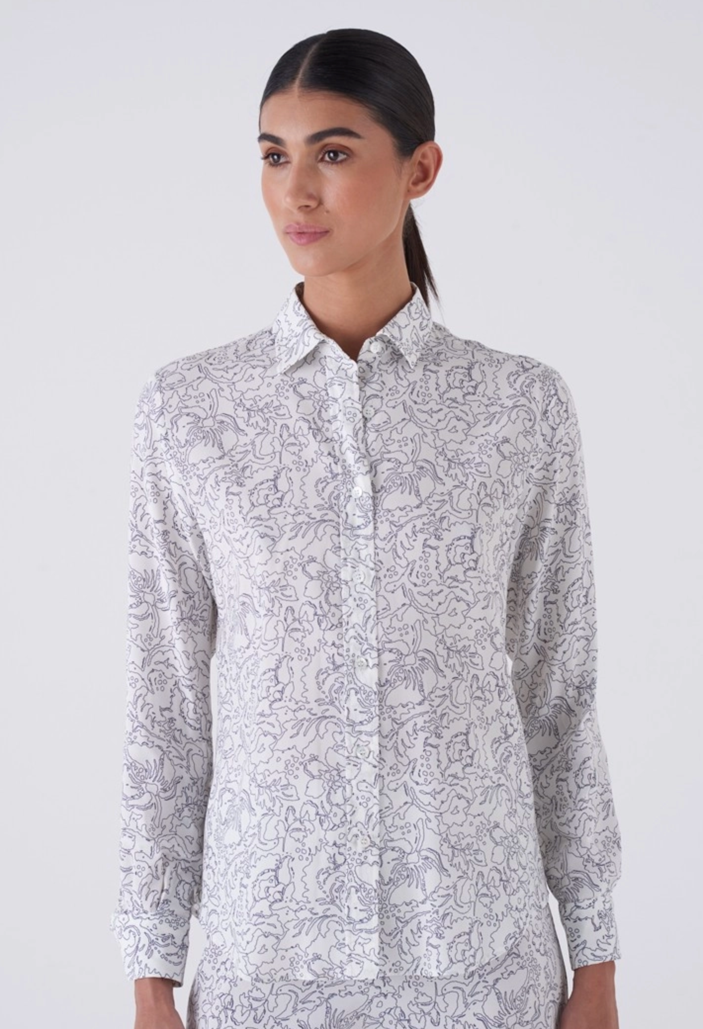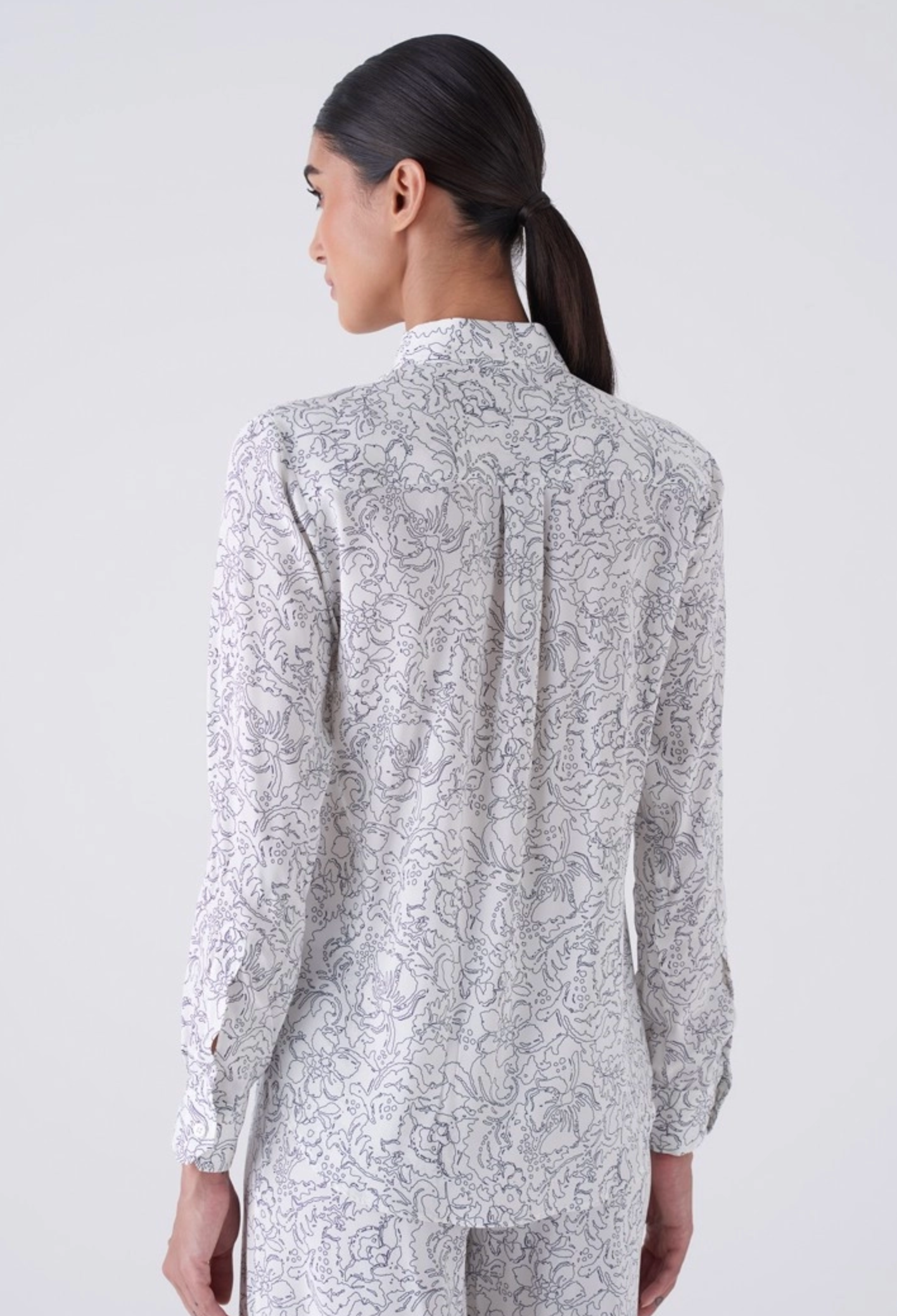 Long-sleeve stretch satin shirt with screen print