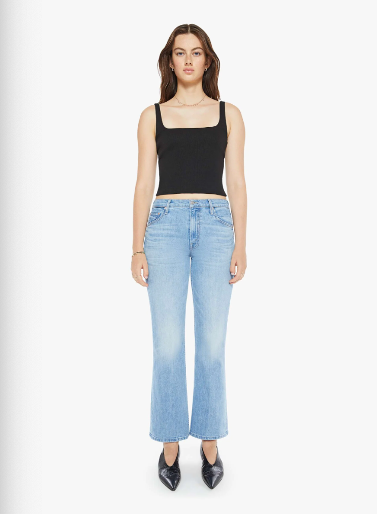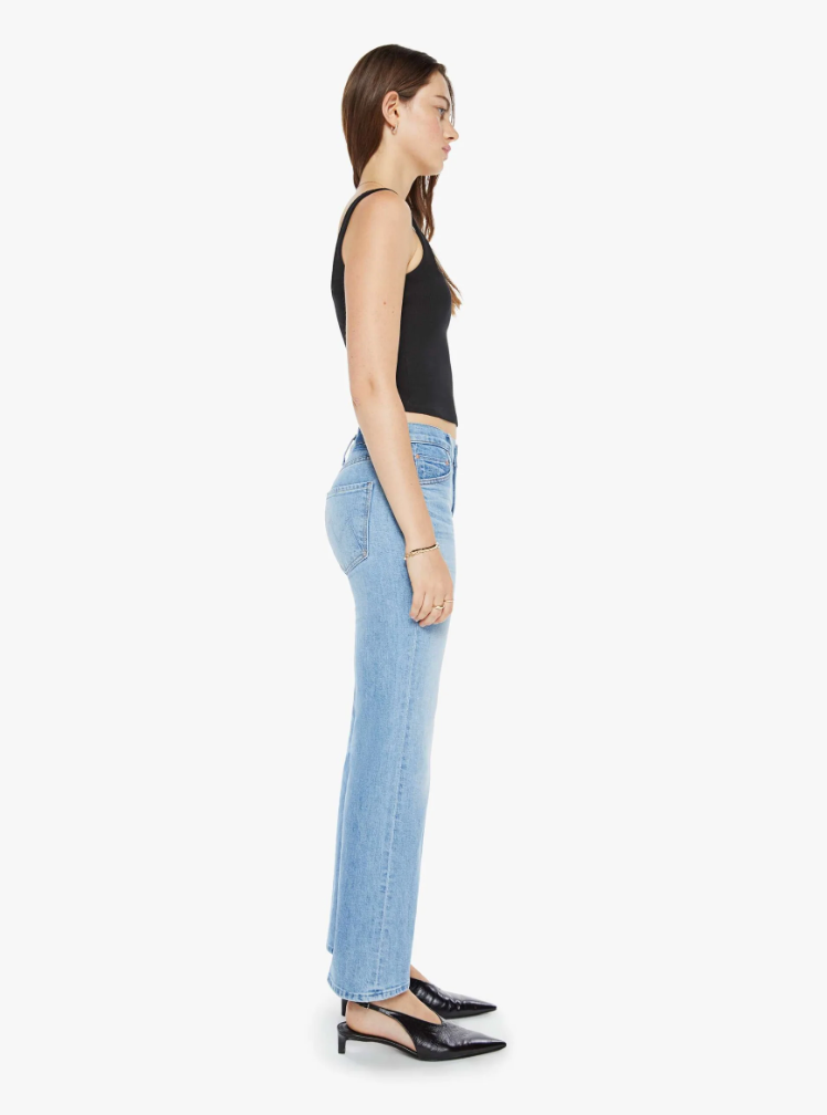 The missing piece. A high-rise bootcut with a looser leg and a 28.25-inch inseam with a clean hem. Made from semi-rigid SUPERIOR denim, Puzzled is light blue with whiskering and fading at the knees.