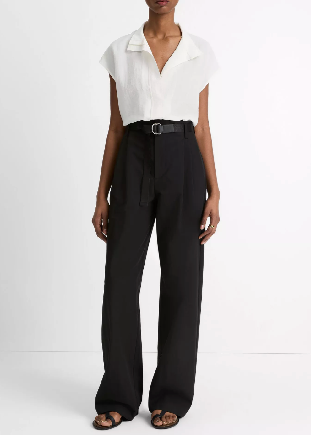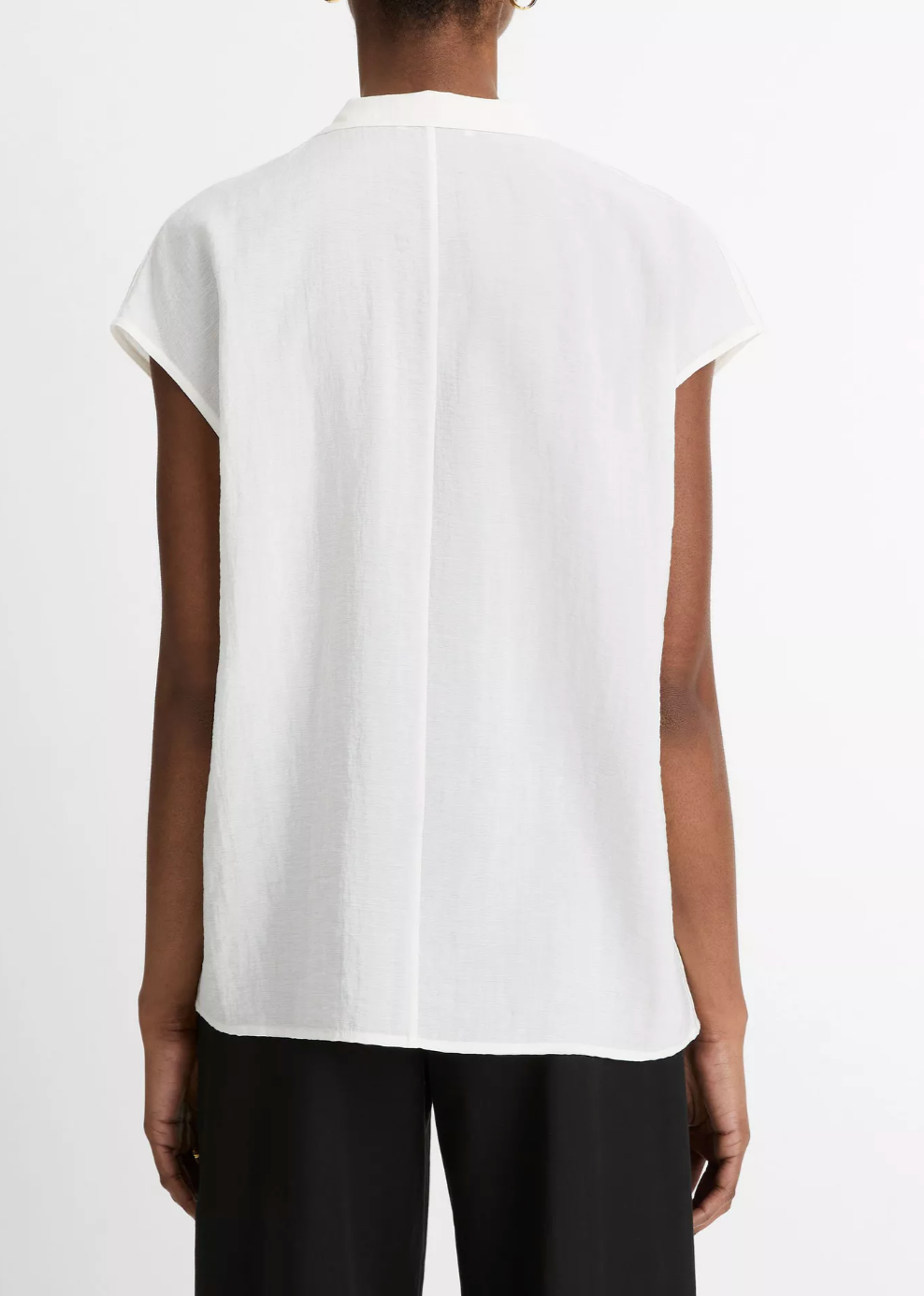 Slightly sheer and softly textured, our cap-sleeve blouse's lightweight voile fabric feels like a dream on hot days. We added a collar stand to create a gently draped open neckline for a subtle peek of skin.