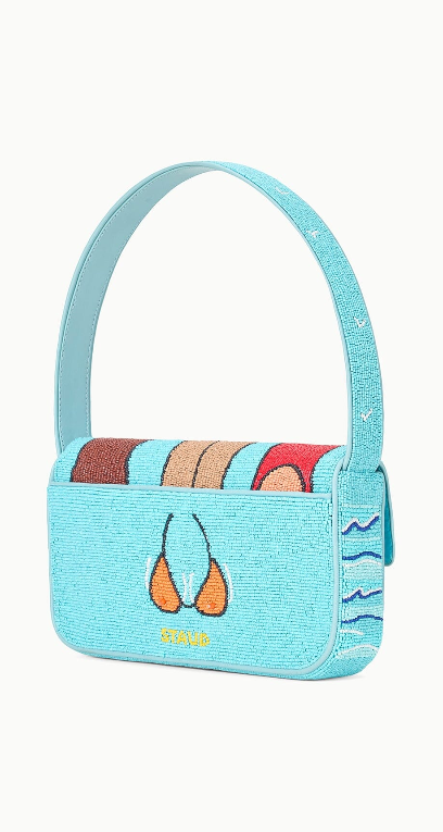 New in for Summer, the Beach Bums Tommy features a fun 'cheeky' seasonal print. The Tommy Bag is a hand-beaded shoulder bag with vegan leather piping. This style features a single flap closure, inner zip pouch and a pocket on the back.