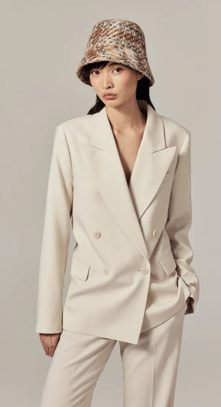 The Saige Bucket features a bold check in an Italian wool-blend bouclé, reimagining a classic shape with tactile texture and thoughtful craftsmanship. A plush cashmere-blend knit lining adds comfort, creating a stylish and considered accessory. Pair with the Arleth Wool Blend Mini Tote for a polished, head-to-toe look.
