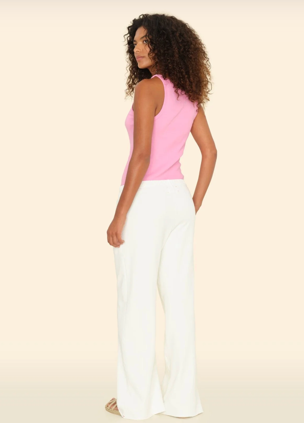 Pull-on sweatpant with a wide leg, elasticized waist, and side seam pockets. Elevated comfort.