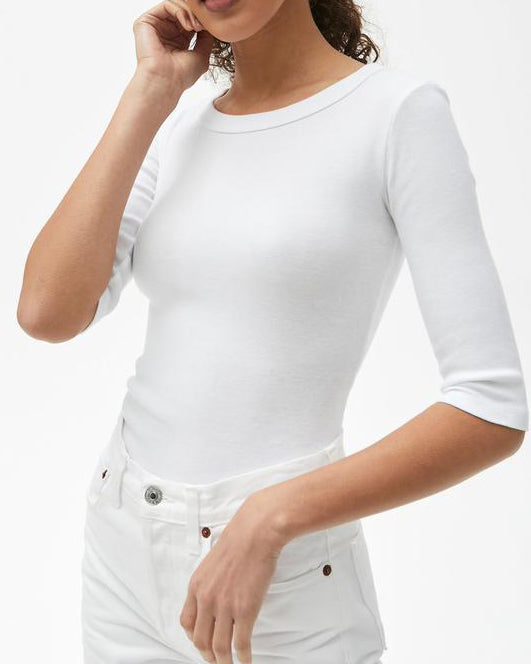 What's not to love about this classic fitted tee that features 3/4 sleeves, a comfy wide crewneck and a soft 100% cotton fabrication.