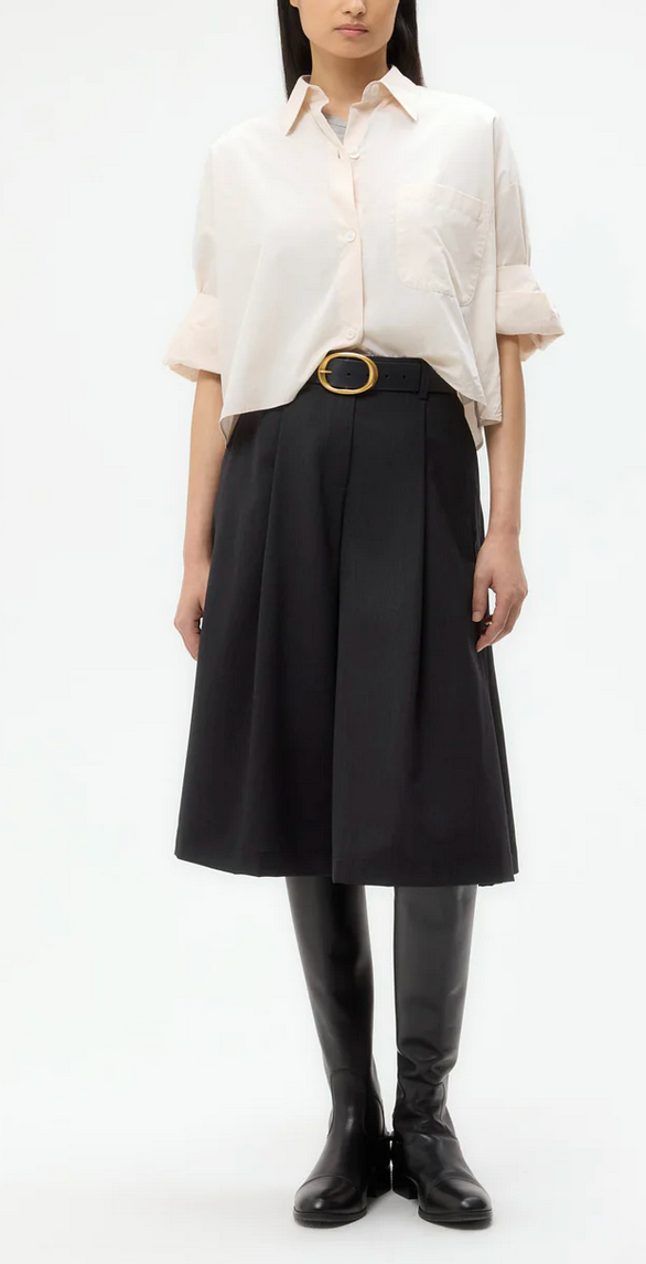Cropped, short sleeved button down in superfine Italian cotton shirting. The Next Ex is a boxy silhouette. Complete with a chest patch pocket, button up placket, spread collar, and our signature double roll button cuffs.