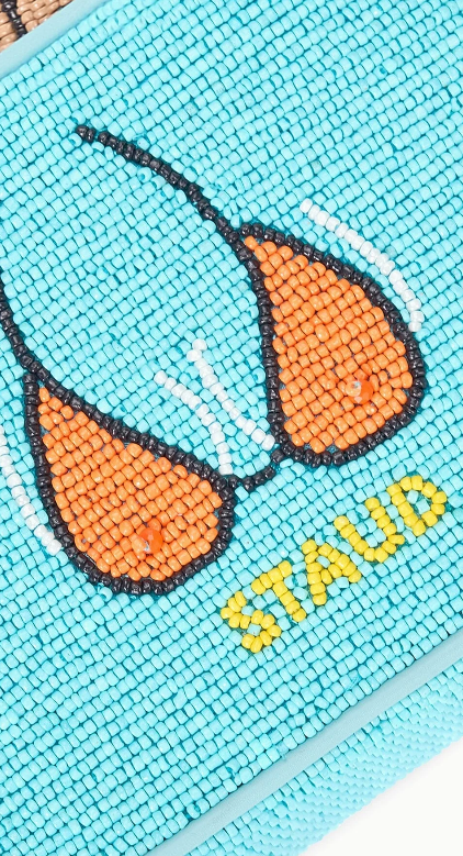New in for Summer, the Beach Bums Tommy features a fun 'cheeky' seasonal print. The Tommy Bag is a hand-beaded shoulder bag with vegan leather piping. This style features a single flap closure, inner zip pouch and a pocket on the back.