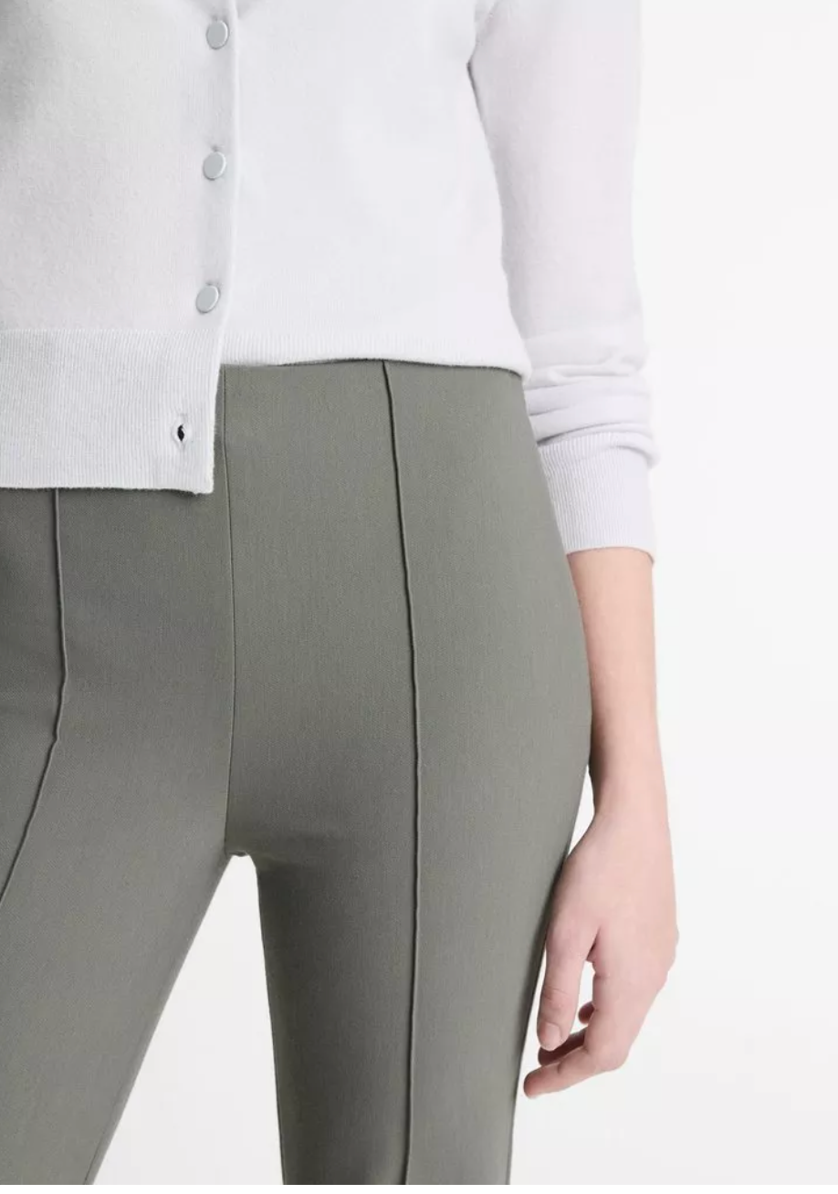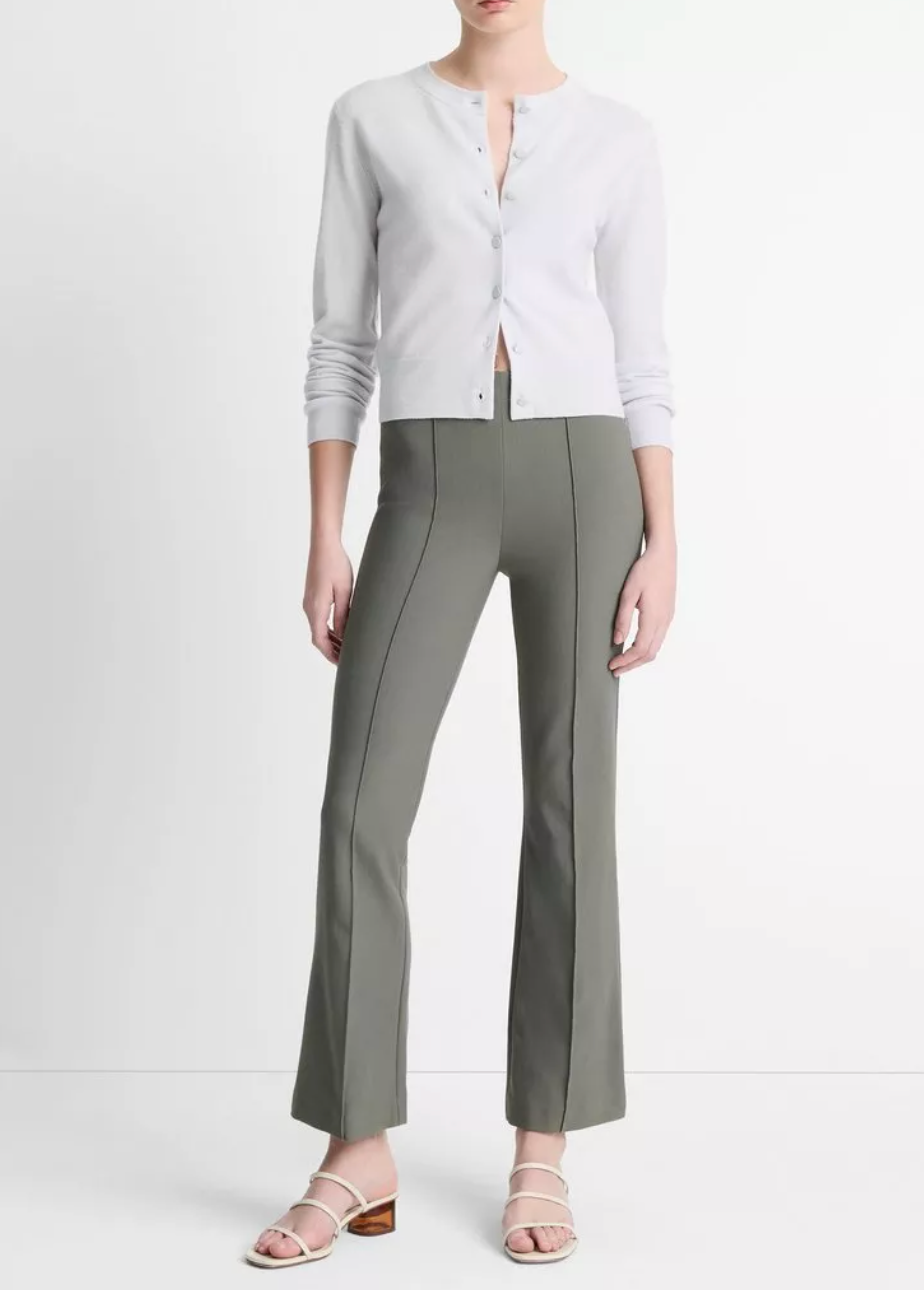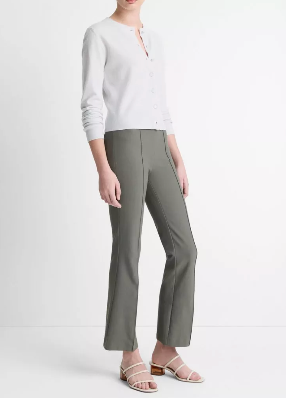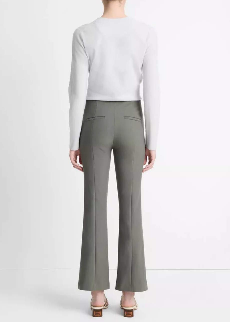 Mid-Rise Pintuck Crop Flare Pant in Pebble